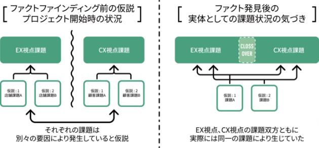 事実を深く掘り下げて収集・分析するファクトファインディングの手法を採用。既知で改善されていなかった点も抽出し、メンバー間での課題認識や用語の違いを明確化。共通言語化を実現。